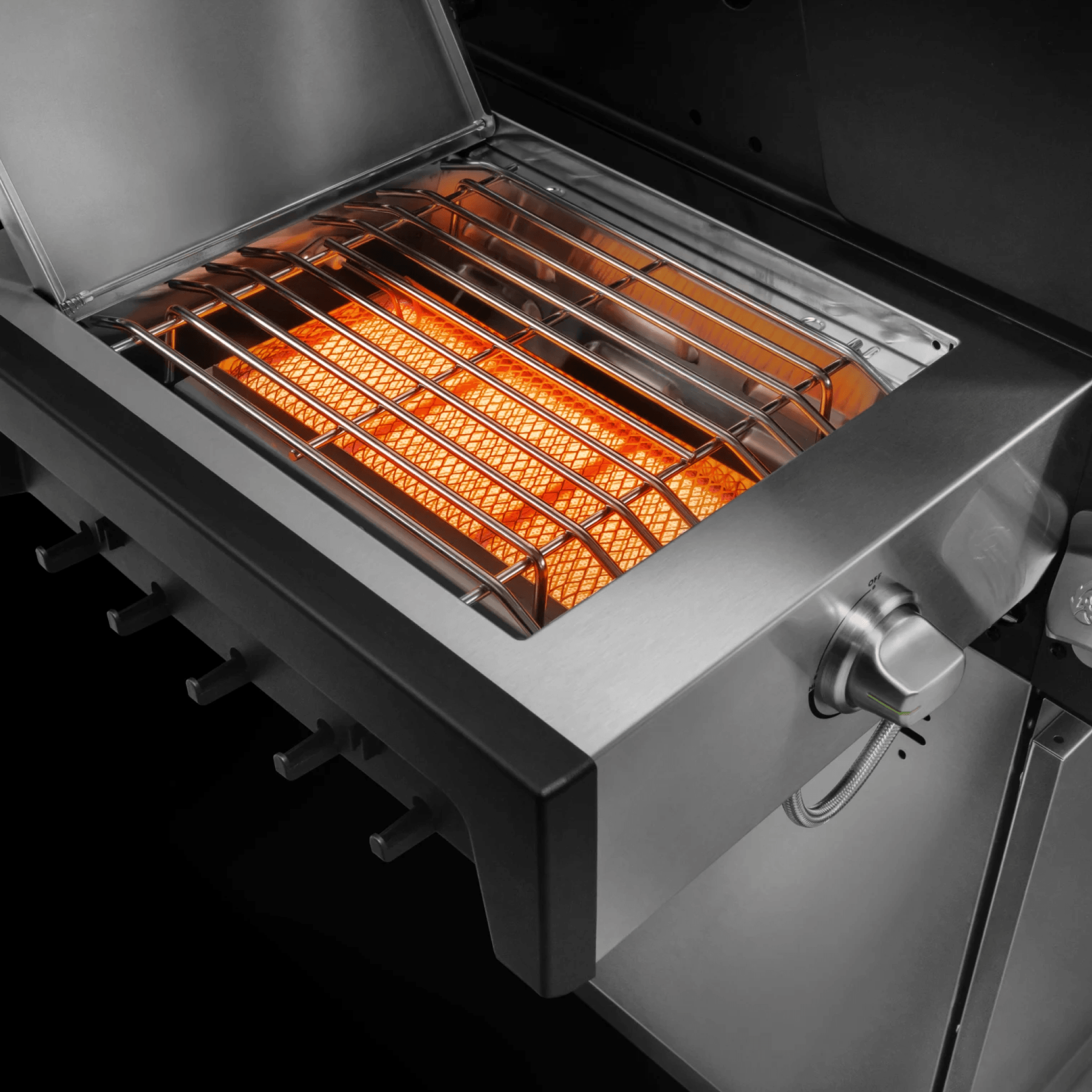 Du erreichst extreme Hitze für scharfes Anbraten und kannst gleichzeitig im Garraum indirekt weitergaren – perfekt für Steaks und präzises Finish.