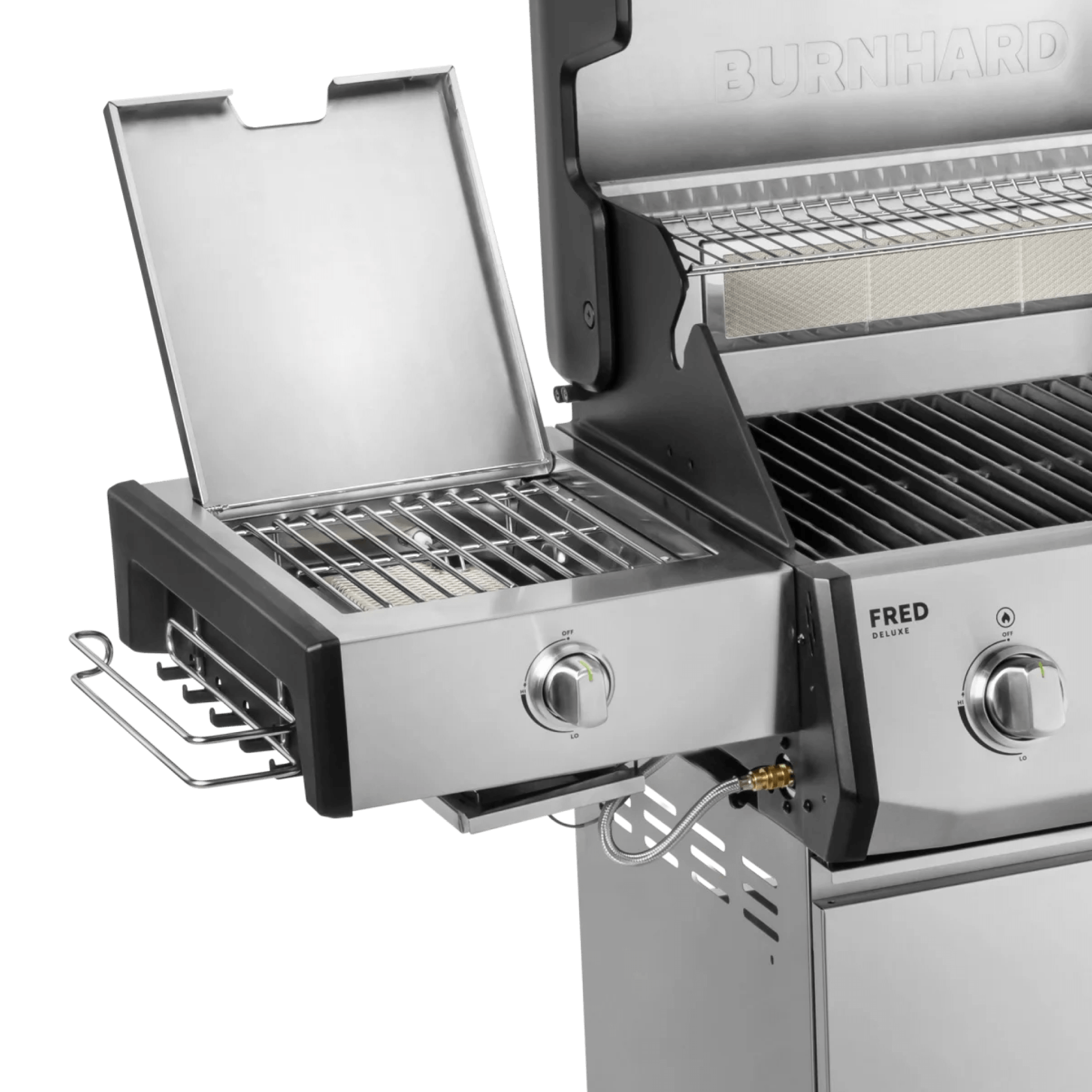 • Außenliegender Brenner – unabhängig von der Grillkammer nutzbar