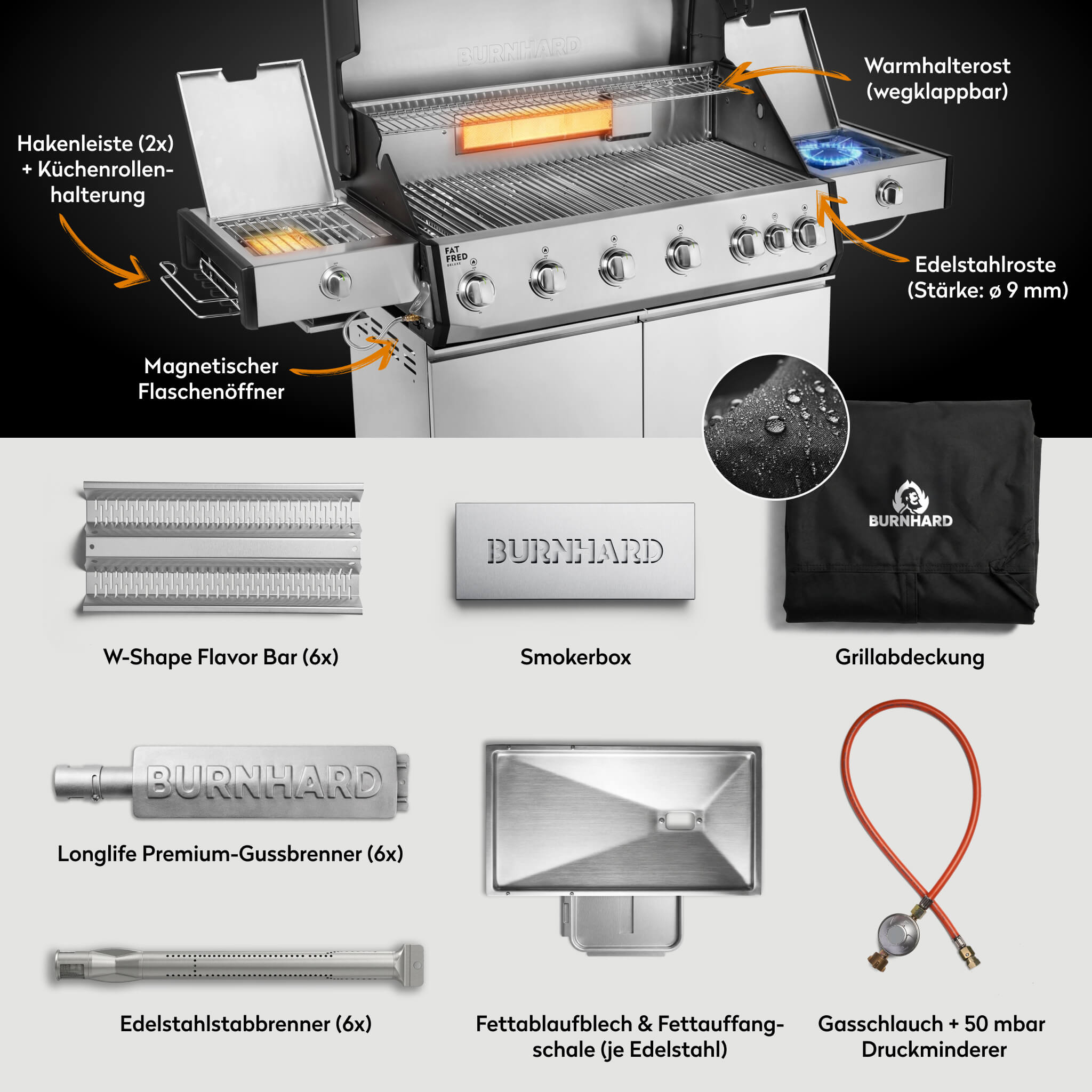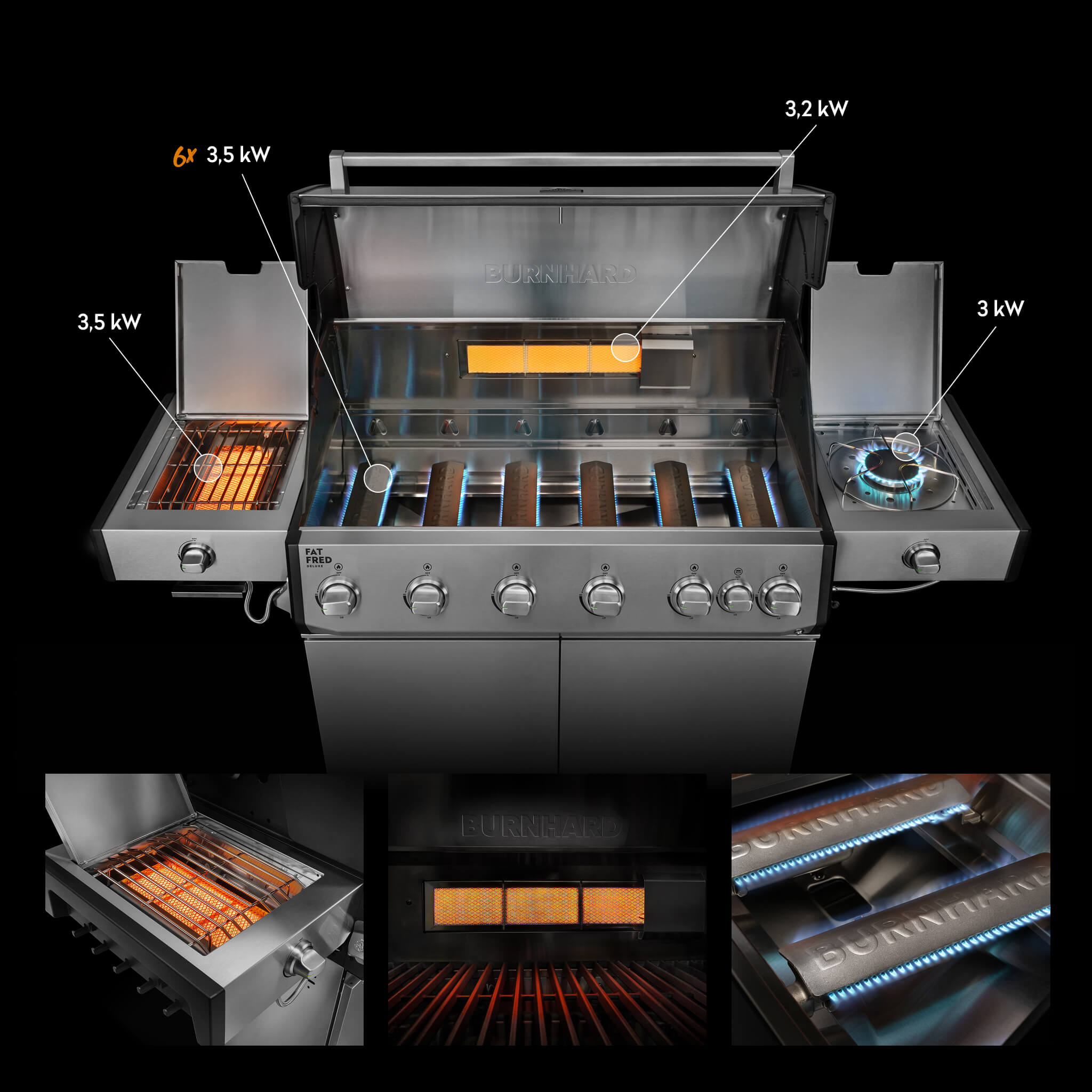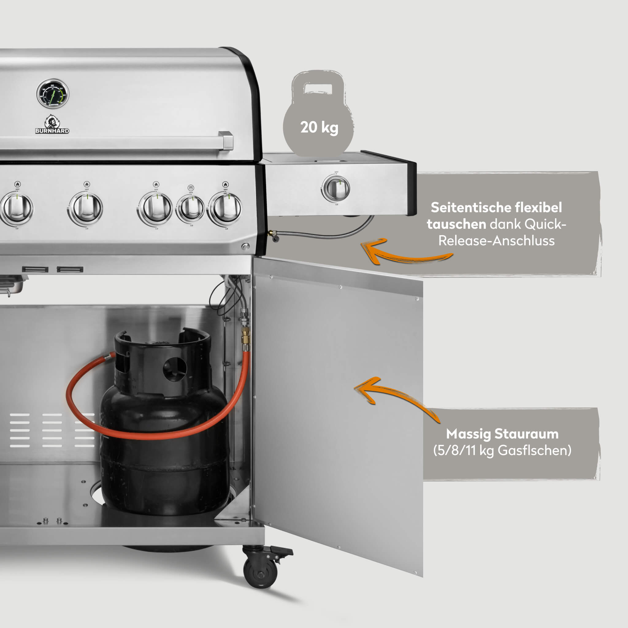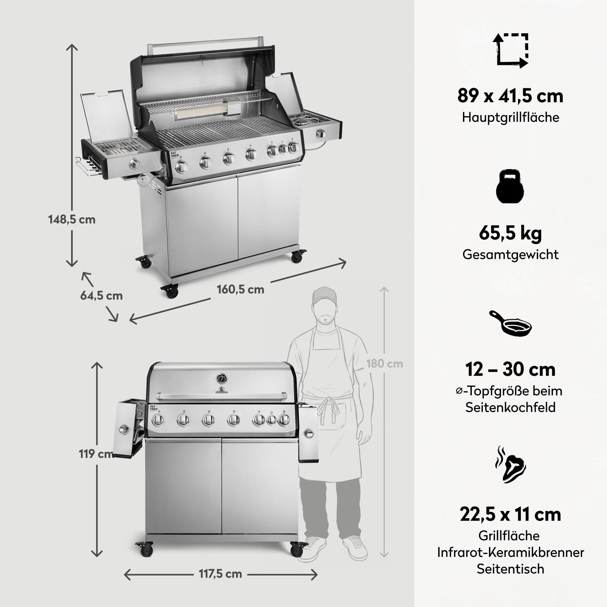 - Mehr Stabilität, mehr Hitze: Alu-Druckguss-Seitenteile – halten die Temperatur da, wo sie hingehört.